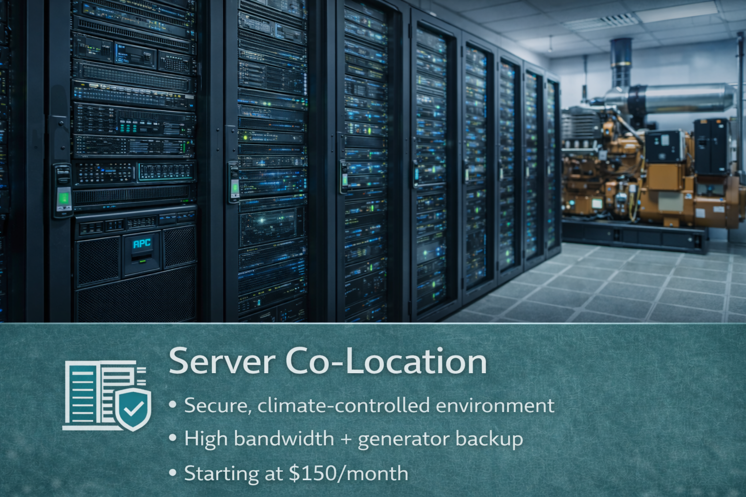 For added reliability, our facility is protected by UPS battery backup and generator power, so your server stays online even during outages—helping prevent downtime and disruptions. Co-location packages start at just $150 per month, making it an affordable way to gain enterprise-level stability with local support you can count on.